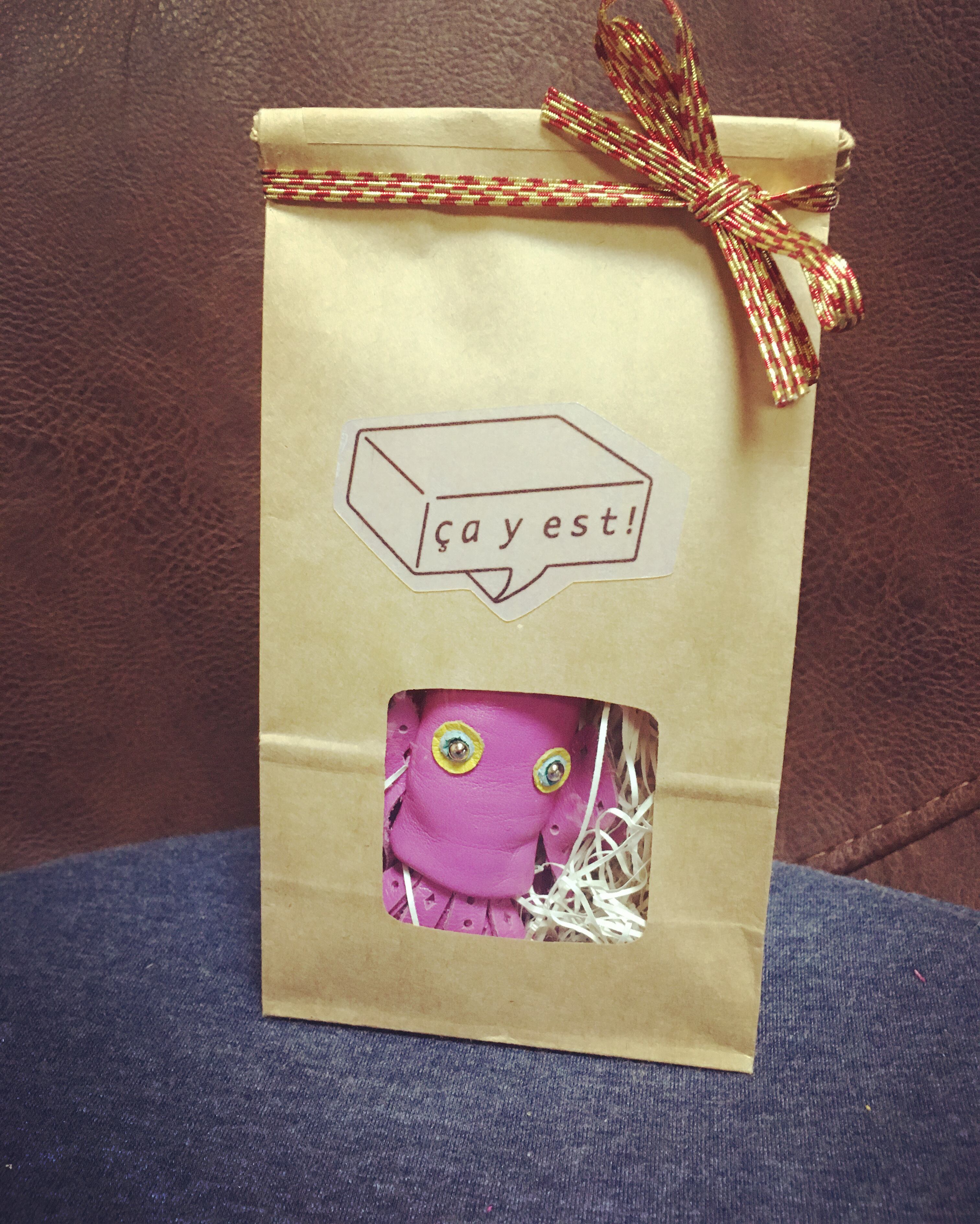 シンプルなトートバッグなんかに付けると、存在感大でとってもかわいいですよ。