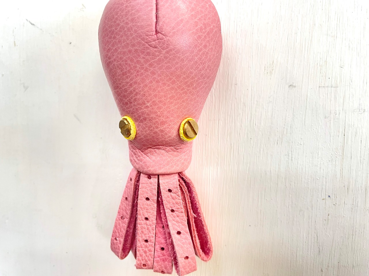 こちらはくすんだピンク色のソフトレザーに、真鍮のめんたま。
